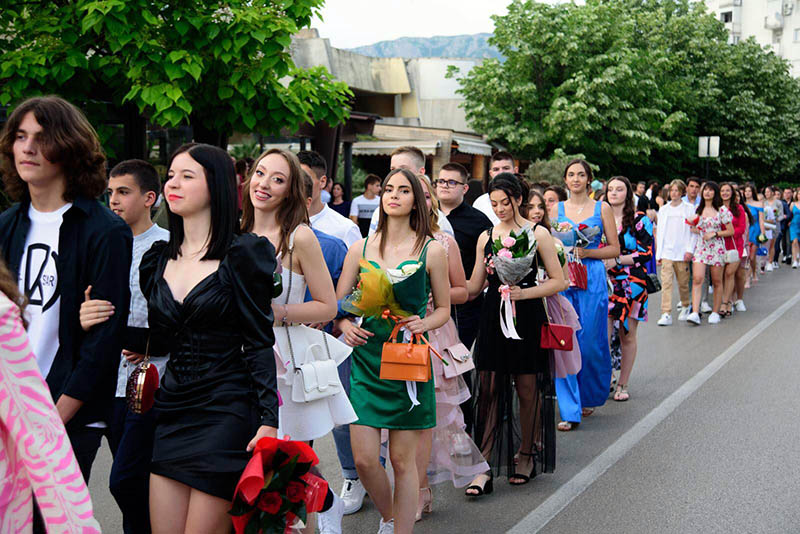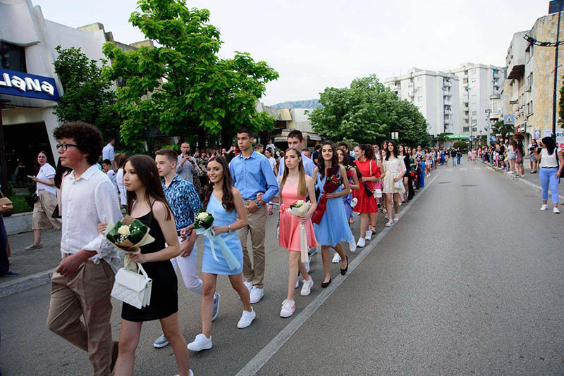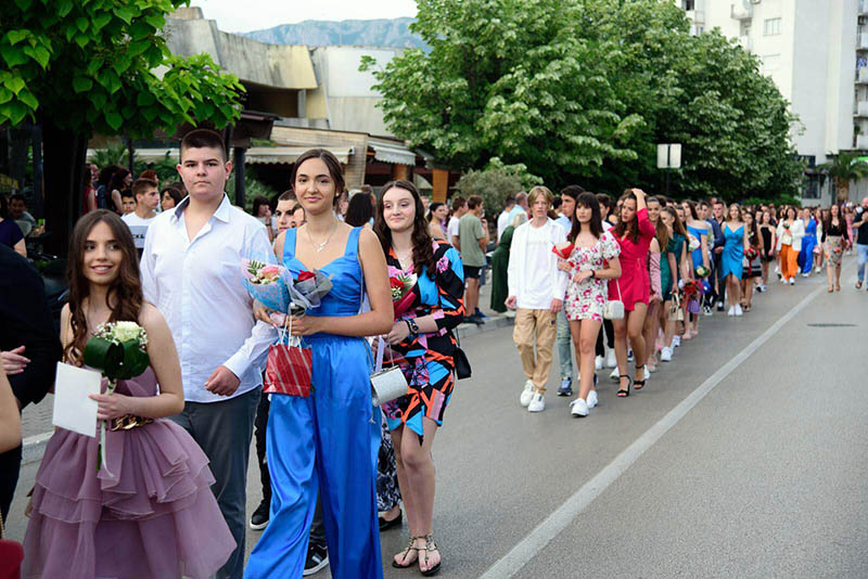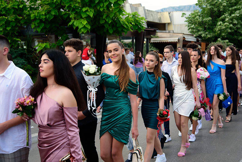 Ученици IX разреда узбуђени и дотјерани, окупили су се у 19 часова испред школе, уз присуство великог броја родитеља, рођака и грађана. Све је помно биљежила камера фотографа Миљана Булајића, а онда је ријека младости и љепоте потекла улицама Мила Бошковића и Владимира Роловића до ,,Градског ресторана“. Сјајној атмосфери, у дивно украшеном амбијенту, доприносили су ДЈ Ади Карађузовић и водитељ Немања Јанковић.